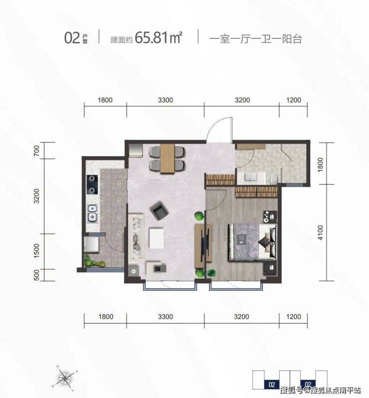 02户型丨建筑面积约65.81㎡