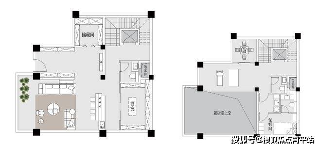 采光天井的布置,放大采光量,使得夹层的使用率大大提高,保姆房就可以布置在此。