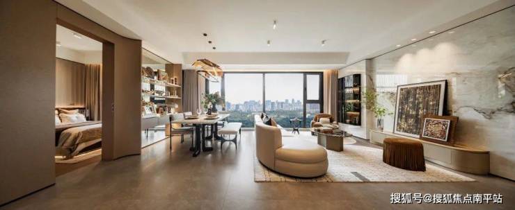 在中建东山樾府,约1/2南向大阳台+全屋4飘窗+大露台全部不计入产权面积,再加上LDKBG一体化无墙垛设计,一气呵成,室内空间大增,就是这么丝滑!