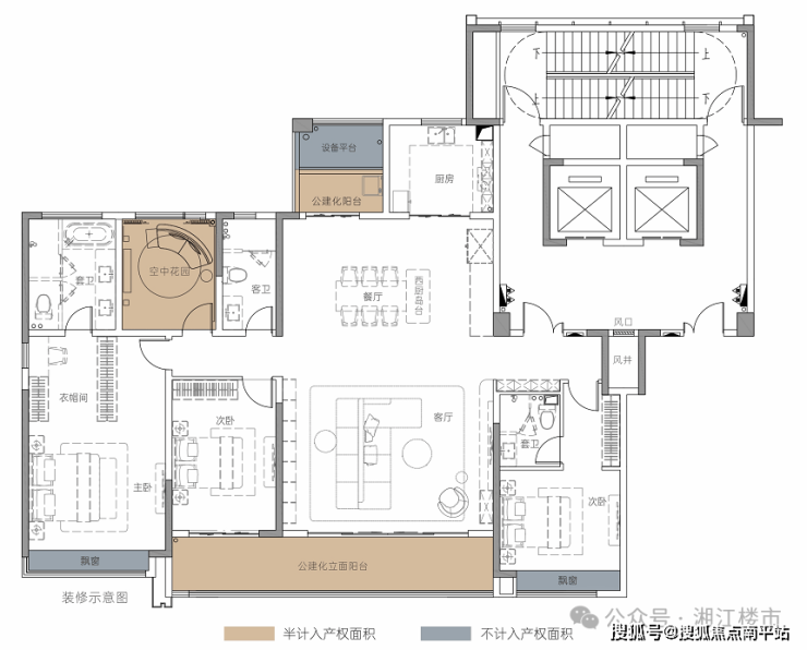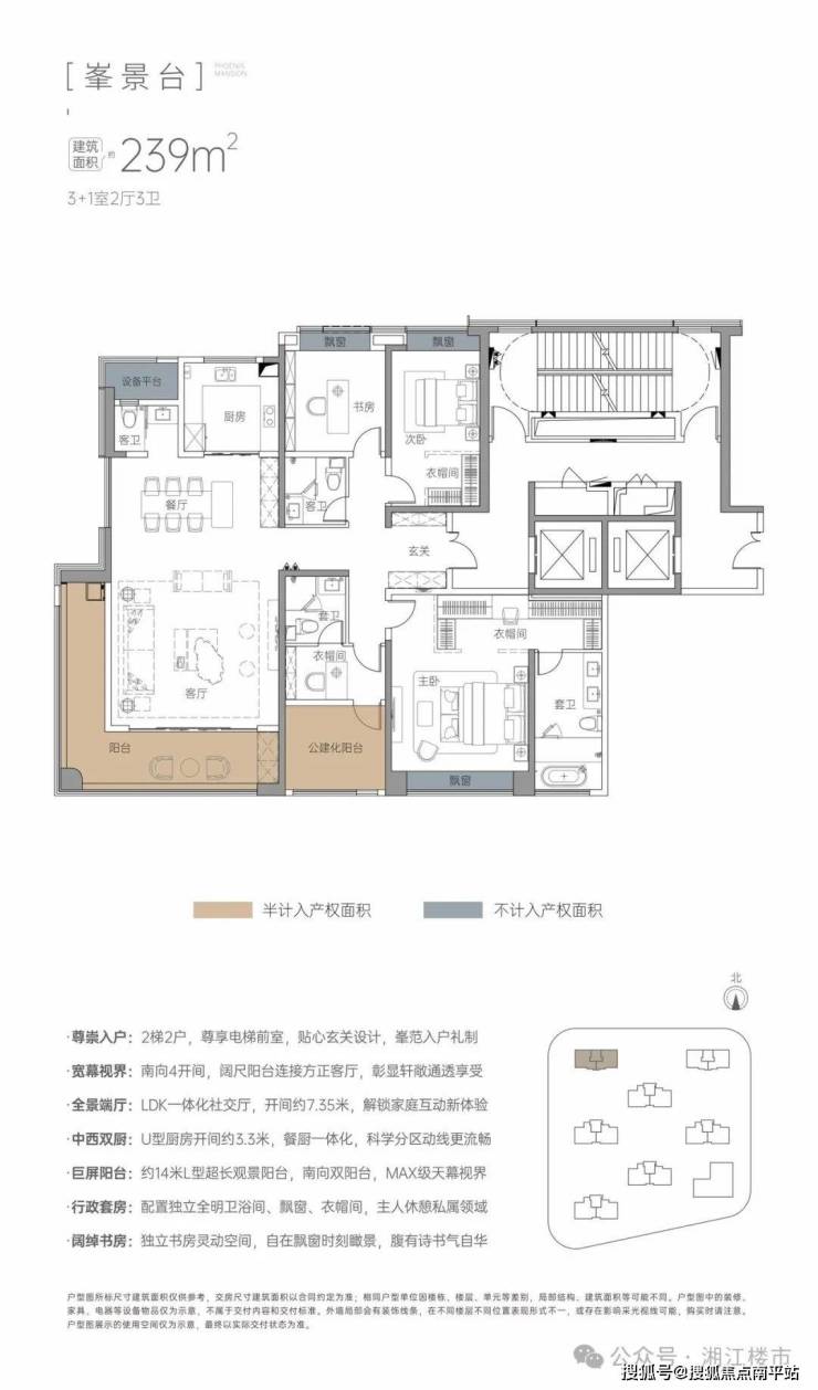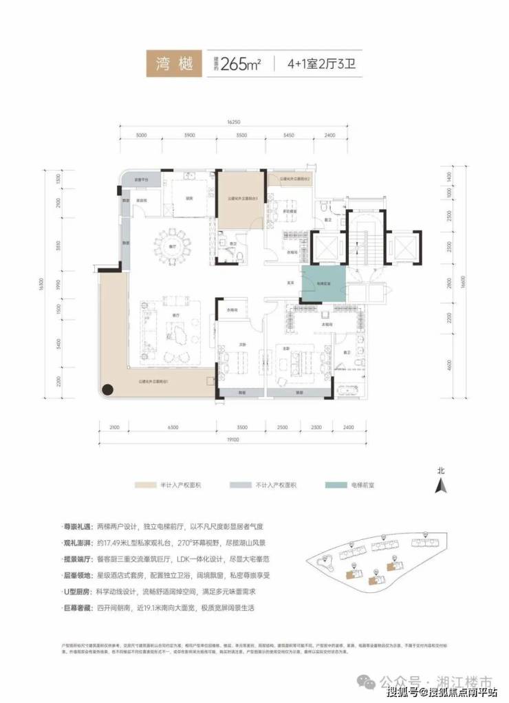 2. 户型绝版性:265㎡临山洋房仅12席,一梯两户设计,私梯入户+3.25米层高,全长沙难寻竞品;