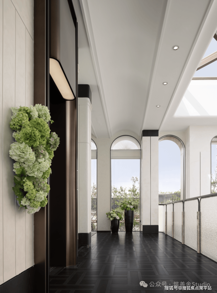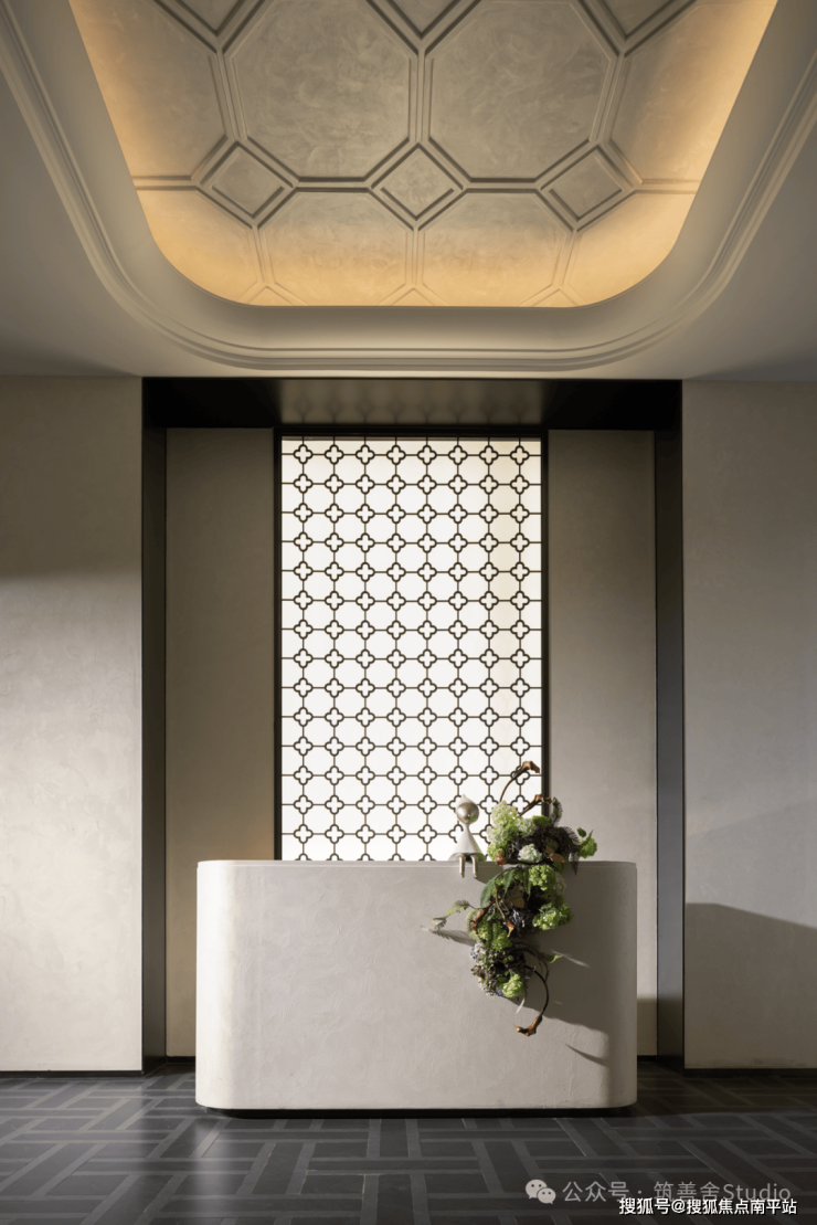 吊顶板设计灵感源自海棠花,密拼铝板中嵌入点状星光,光与影的交织展现出功能与艺术的完美融合。入口处精选豪华奢石,以其独特的纹理和温润质感,为归家者打造一段专属的记忆。正如叶片依赖根茎枝干得以绽放,西棠和煦Ⅲ正是对自我价值的一次深刻探索与展现。