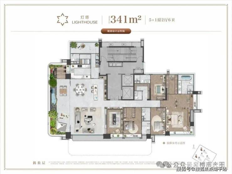 项目规划6栋高层共224户,其中341㎡一层一户仅42席,户户皆带私人专属空中花园,打造纯粹建面约218-341㎡第四代住宅大平层。