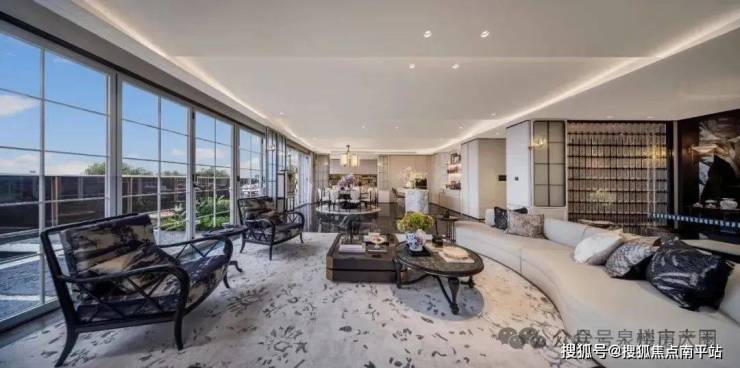一踏入样板间,给我的第一印象就是尺度感惊人,不少在现场参观的客户,也有同样的观感。建面约221㎡空中三进平墅,实际可用面积达约239㎡,相当于传统住宅约300㎡居住体验。