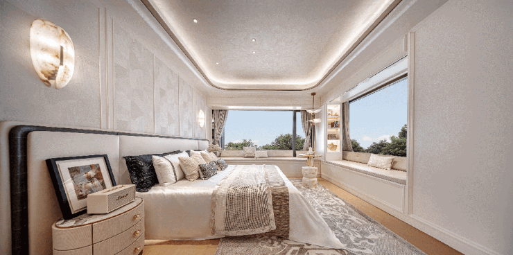 市面上普通主卧套房往往止步于"够大",而这里星级主卧套房,更精心设计L型全景飘窗,带来极致的采光与景观视野。