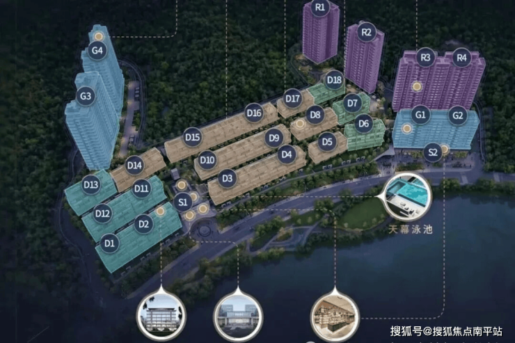 总楼栋:4栋9-17层小高层,18栋4-6层二三叠院