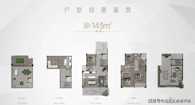 项目除了4栋R1-R4栋政府配建房以外,对外销售的产品涵盖叠墅、小高层和高层,户型建面均为143㎡。中间一线临湖区由18栋4-6层的叠墅组成一梯一户,合计188套;右侧为2栋9层高的小洋房,两梯两户,都是独门独户。同时还有4栋保障性住房,左边是2栋16-17层的小高层,两梯四户。