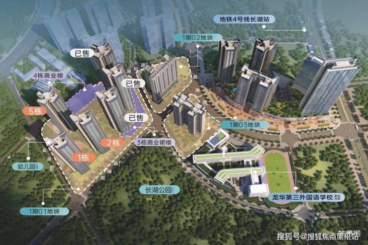 项目分为三期开发,图中红色部分为一期拆迁及建设范围,九年一贯制长湖学校也在其中,位于一期的最南端。万科启城家园规划由10栋建筑组成,商业约2.4万㎡位于裙楼:公共配套设施5350m包括9班幼儿园2400㎡、居住小区级文华室1500㎡、社区健康服务中心800㎡等:规划3050户。