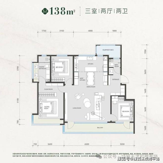 宽厅 LDKB 一体化:约6.5m 奢阔宽厅、餐厨与 约9.7m开敞阳台串联,空间联动性强;