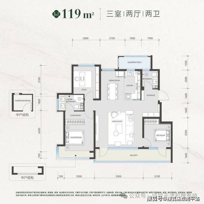 超宽南向面宽:约 11.7m 南向面宽,布局紧凑无冗余,得房率高,空间利用率优;