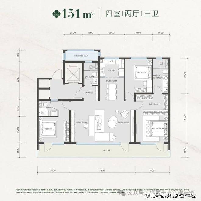 奢阔LDKB一体化:约7.2m 宽厅、餐厨与约14.6m 开敞阳台衔接,满足家庭互动需求;