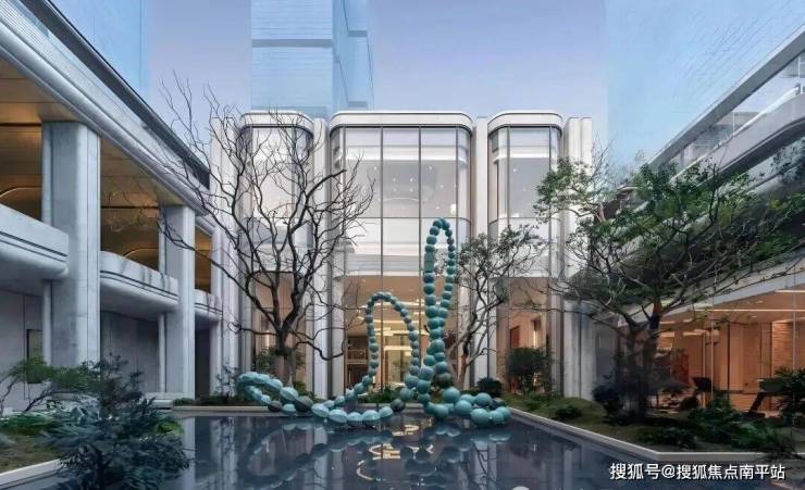 项目做了大约6000㎡的实景展示区,其中最打眼的,就是约1200㎡的下沉庭院景观——这既是绿城立体造景的一个代表作,也是以后业主日常待得最多的地方之一。整体景观按“横轴看山、纵轴引湖”来布局,融了些古典诗意,打造出“山行、水游、林居”三个主题,形成了一套三维垂直洄游体系。靠6米的高差,地面园区、下沉庭院、地下会所三层景观叠在一起,走一步是一个景,层层递进,感觉像是把自然悄悄藏进了社区里。