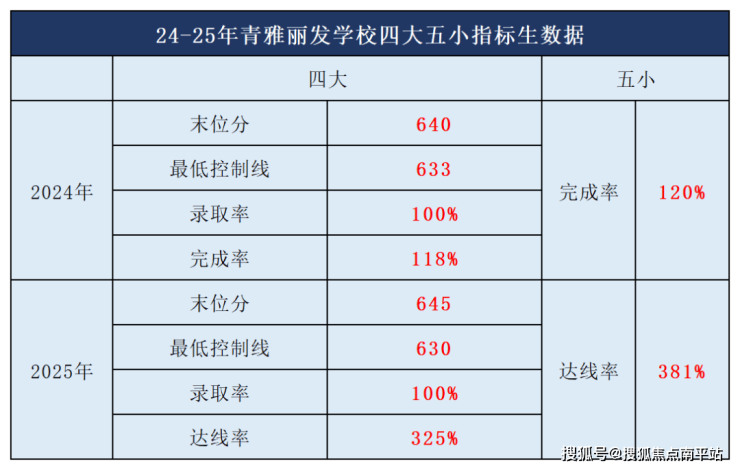 其中,2025年四大名校达线率325%,五小达线率381%,意味着学校符合四大五小指标生要求的学生数是分配名额的3倍多。