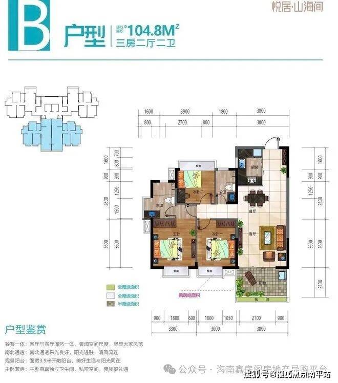户型面积:101~106三房两厅两卫/两房两厅两卫