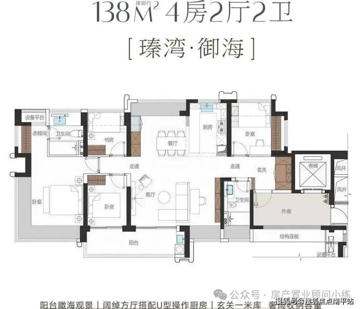 提供114-143㎡的四房及以上大户型,均为纯商品房,无保障房混住,业主圈层纯粹。部分户型采用新规设计,得房率较高(约108%),且专梯入户、独立玄关,提升居住私密性和实用性。138㎡、143㎡户型南北通透,采光和通风条件优越,空间布局合理。