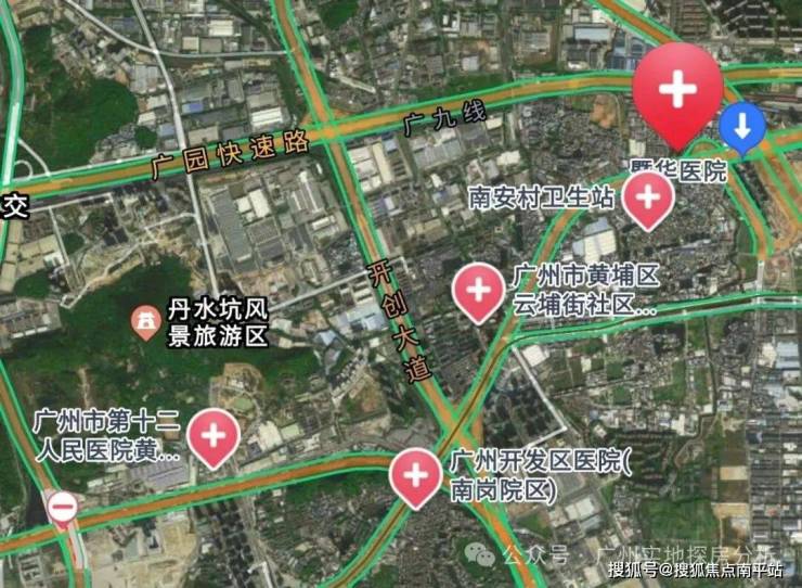 约900米范围内有暨南大学附属暨华医院、南方医院增城分院等三甲医院。