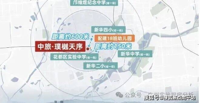 项目配建一所18班超大幼儿园,3公里范围内省一级新华四小、新华二小、新华三小、实验中学秀全外国语学校、新华中学等优质教育资源环伺项目对口的新华四小大概600米。