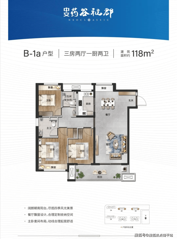 产品规划:建面约98-118㎡幸福三房