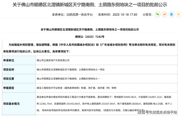 近日,佛山市自然资源局顺德分局发布了《关于佛山市顺德区北滘镇新城区天宁路南侧、土荫路东侧地块之一项目的批前公示》。