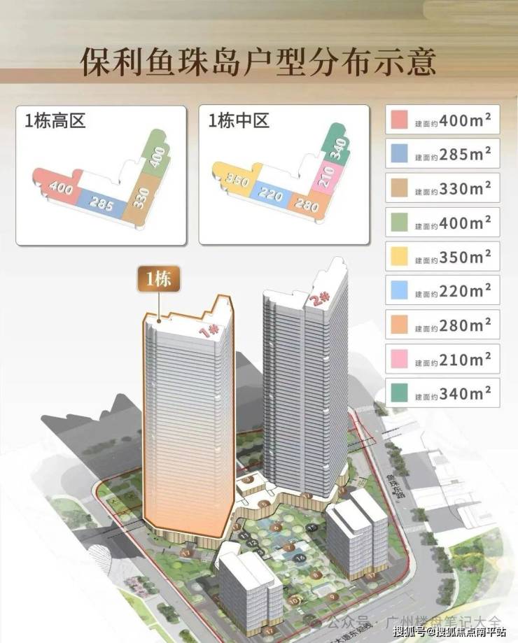 首推1栋大平层,户型为200-400㎡ 在规划上,保利鱼珠岛一共4栋建筑,1栋和2栋为大平层,大约是400多户。 首推的是1栋大平层,高50层,建筑面积大概分为200-300-400平。