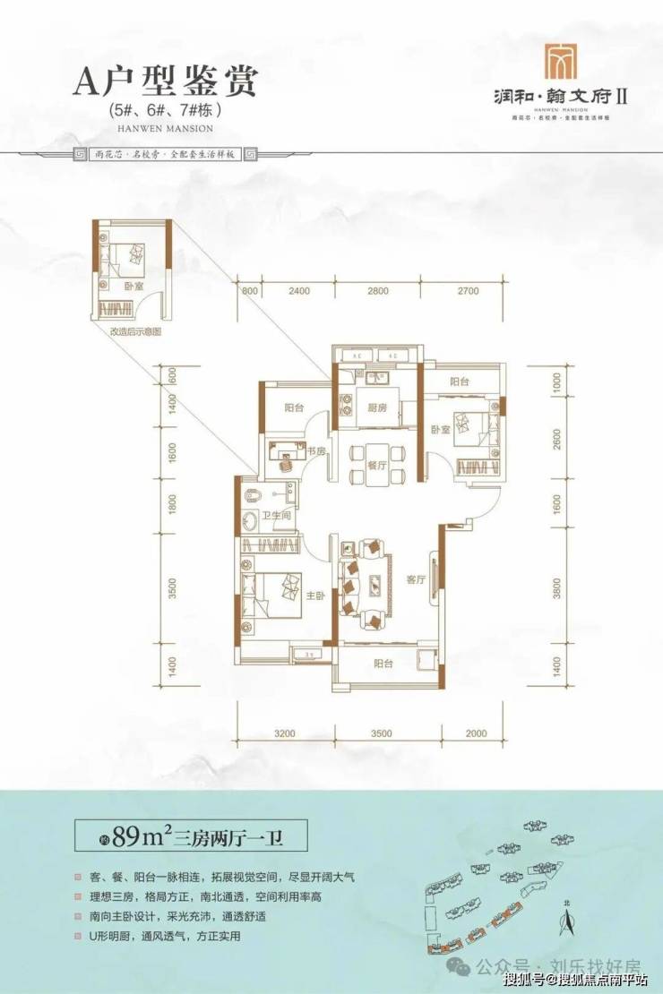 👉产品类型:约89㎡通透三房