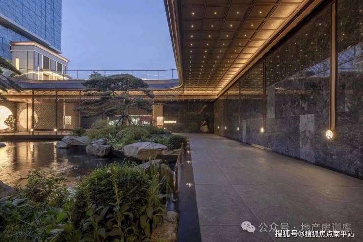 水,作为纽带,巧妙地将归家的路途与自然景观融为一体,一座桥梁悠然横跨其上,仿佛将自然的灵气引入这方天地。镜面水池、涌泉、瀑布多种水景形态交织呼应,不仅满足了人们对近水、亲水的向往,更在这片繁华都市中,营造出一片大隐于市的静谧与舒适。