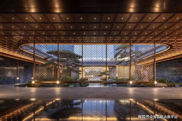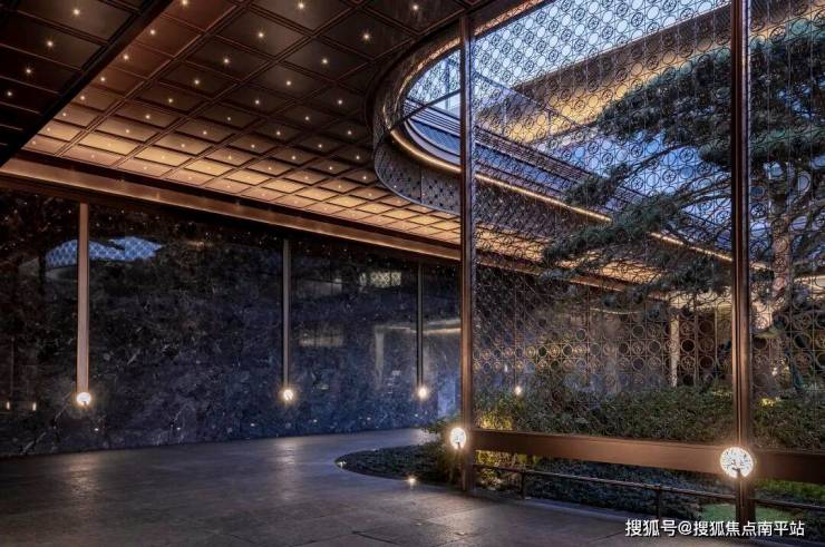 12米高的云石藻井,曲水水纹,将古建筑中的藻井转译为现代空间。