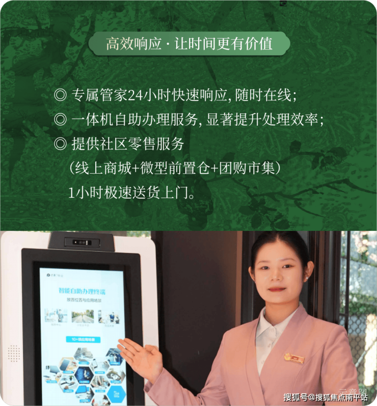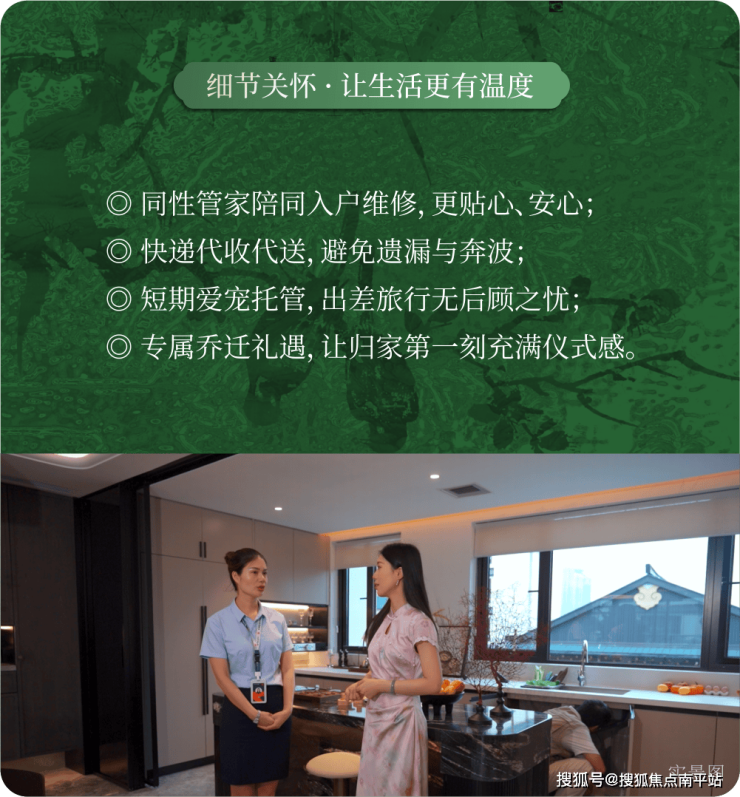 此次服务焕新,由保总亲自带队,组建高配服务团队,高标准选拔服务人员,减少单人工作负荷,只为确保每一次响应都足够专注;环境管理投入翻倍,园区洁净度、安静度、秩序感全面提升;家访频次提升100%,真正了解业主的生活节奏与需求。☎☎400-159-8559转接8666-已认证(来电尊享优惠活动)