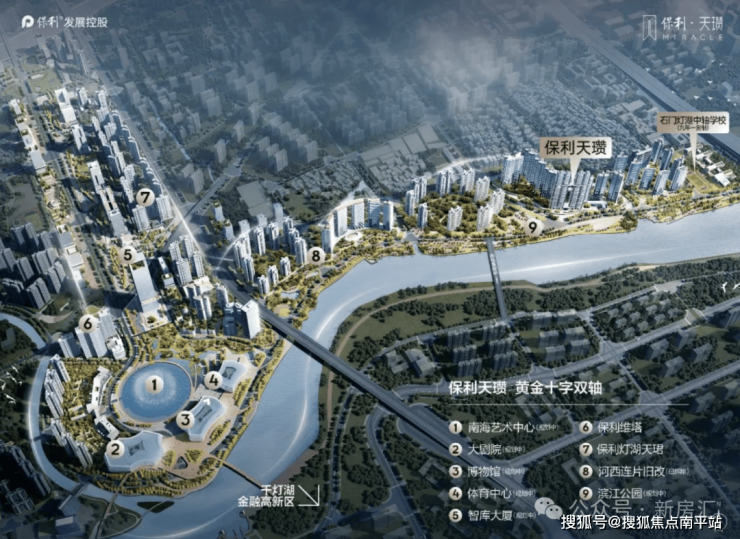 保利天瓒项目坐落于灯湖中轴,成为引领城市文化经济发展的重要标志。该地区汇聚了22座超百米高的地标性建筑,投资额高达1500亿人民币,旨在打造广佛同城的新核心——南海之眼文化集群。