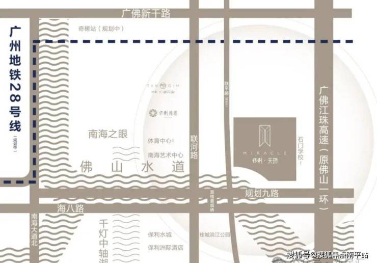 项目地处佛山南海中轴线东侧与城市黄金水道北侧的交汇之处,坐拥得天独厚的生态环境以及比肩广州中轴的城市规划优势。周边不仅有高品质的新建建筑群,更有丰富的文化资源。