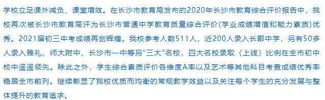 长郡双语是长郡中学原来实际意义上的初中本部,2009年开学。