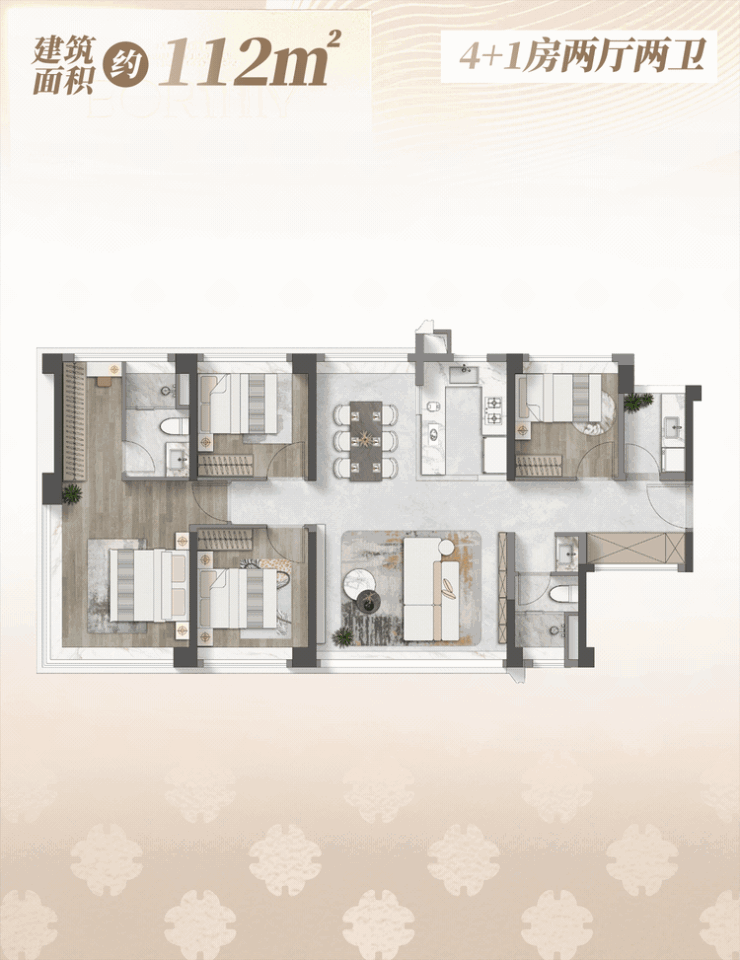 建筑面积约112㎡户型,主城舒适真四房