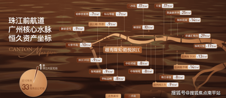 珠江两岸汇集了广州最贵的住宅区珠江前航道断供良久,滨江中板块更是10余年无供应