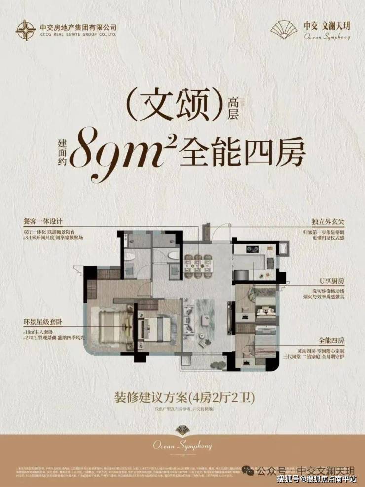中交文澜天玥|集美“最后湾海景观眼”文颂89㎡全能户型|可交付定制三房/四房|海派南洋风格下沉式会所约3000㎡