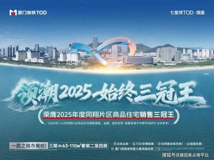 过去三年,厦门楼市的焦点都聚集于千万级豪宅之上,但“好房子”从来都不是少数人的游戏。在岛外核心区,一个超级大城正悄然创造销售奇迹。它开盘至今售出1700+套,霸榜2025年度同翔片区销售三冠王,12月份三期推出也是单月全市销售三冠王(数据来源于中原市场研究),三年内迅速成长为集“地铁+海景+沙滩+酒店+产业+商业+学校”于一体的新城核芯。它用实实在在的销量,证明了什么是普通人用钱投票的“好房子”。它就是环东海域的骄子【七星湾TOD】。