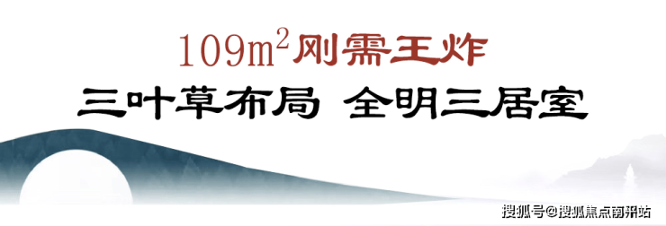 首先来看第一个户型, 建面约109㎡舒适性三房,三房两厅一厨两卫的全明户型。