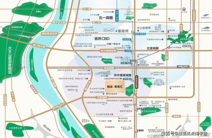 【城市道路】芙蓉南路、万家丽南路、天心大道、环保大道4条城市主干道,去往省政府约15分钟。