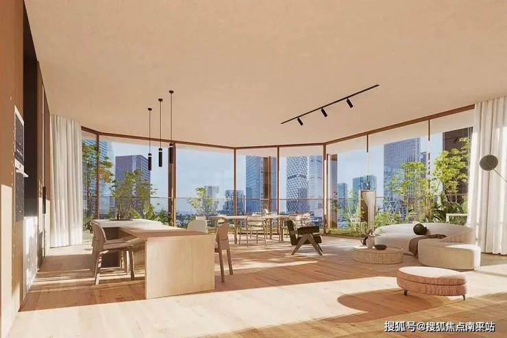「深圳湾澐玺」景观面集中在东边,看整个深圳湾人才公园以及福田罗湖的海滨天际线。项目也是聚焦“全向东布局”的景观策略,尽可能做到户户海景。