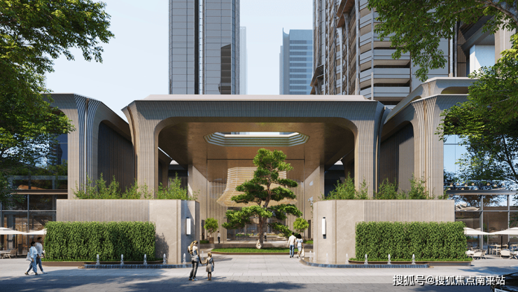 创新功能包括:架空层植入泳池与全龄活动区、避难层改造为观景会所、高空连廊嵌入社交空间。塔楼顶部规划直升机停机坪,地下车库预留智能驾驶车道,实现地面至空域的立体通行。商业底商设计为玻璃格子街铺,类似深圳湾1号,引入轻奢品牌。项目还融入生态连廊系统,连通人才公园及周边配套,并采用分级管控策略:内部庭院封闭管理,外围与城市融合。