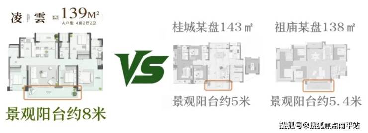 与市场上 约5-5.4米单面宽阳台的同面积产品相比,青雲臺阳台优势一目了然。