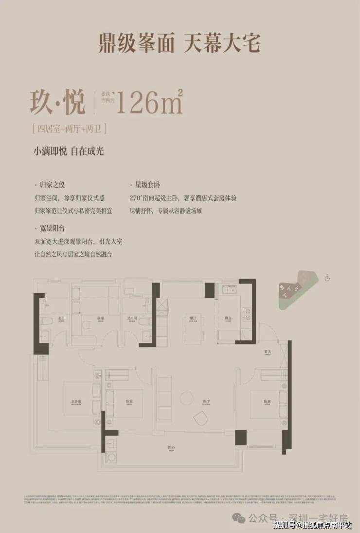 项目定位为高端改善型住宅,隶属中海地产备受赞誉的"玖章系"产品系列,与深湾玖序一脉相承,代表中海在深圳高端住宅市场的又一力作 。项目不受"7090政策"限制,全小区没有套内低于90㎡的住宅,全部四房起步 ,最小户型126㎡,最大达282㎡,是真正意义上的改善型纯豪宅社区 。
