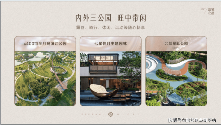 这还不算完,小区里面自己还规划了“七星伴月”主题园林。另外,在北侧还规划了一个叫“星跃公园”的绿地。这样算下来,等于自家园林、社区配建公园、加上半月岛大公园, 形成了“内外三公园”的格局,喜欢安静和绿化的朋友应该会挺中意。