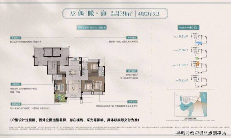 项目超低容积率仅1.4,在楼栋布局上,将 “瞰湖海” 的核心需求前置,首波公布的环湖空中院与湖海四代宅两大产品,于社区右侧环湖而立,近海湾, 既确保最大程度打开正南向瞰湖+环幕海湾视野,又实现了低密纯粹的居住氛围。