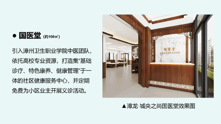 漳龙·城央之尚没有把项目完成止于交付,而是在交付后,继续对项目的配套服务设施投入重金改造与运营,将养老、托育、乐活青年协同嵌入社区服务体系,打造国医堂、一老一小服务中心、社区食堂、健身中心、社区学院、共享会客中心、漳龙园艺自助区等七大公益配套,以“好服务”创新构建“成长型社区”,持续加持项目价值。