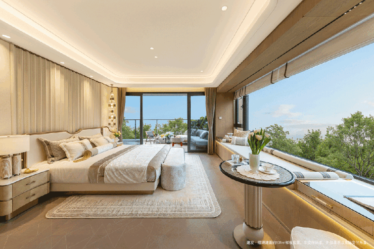 而酒店式套房主卧更是一绝,不仅配备独立衣帽间+独立卫浴+观景飘窗等,还做到南北通透格局,带270°观景视野,打造一方私密且尊崇的独立场域。