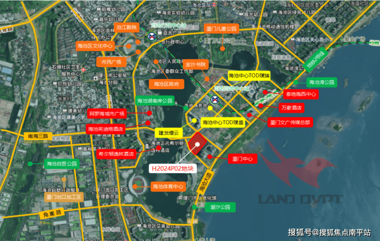 H2024P02地块位于海沧嵩屿片区海沧CBD板块,雄踞海沧新市区核心地带,西侧濒临海沧湖水秀公园,与阿罗海城市广场仅一桥之隔。片区内建设甲级写字楼、SOHO办公、五星级酒店、高档住宅小区、商业中心等多个商业载体,将成为海沧南部新城崛起的新引擎之一。