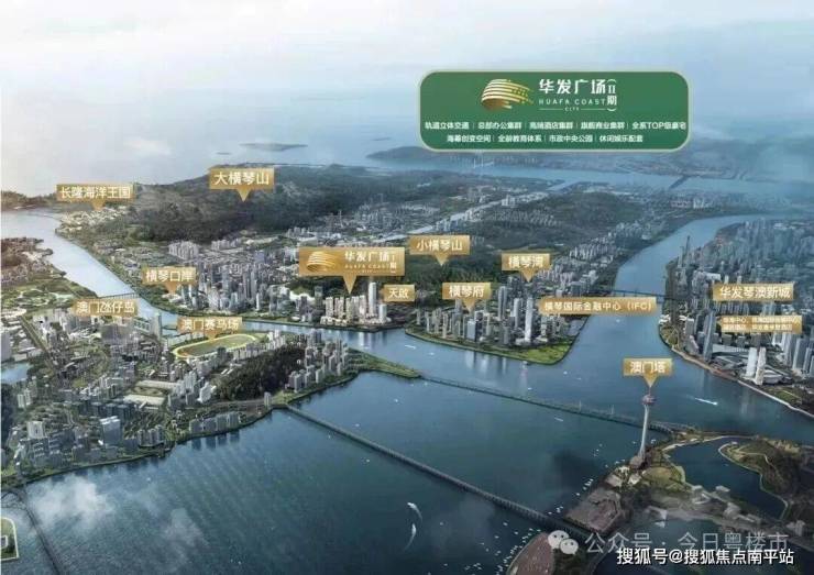 项目位于湾区黄金风口——横琴。横琴岛作为珠海市最大的岛屿,东临澳门,属于粤澳深度合作区,同时也是珠江西岸的国际金融中心。