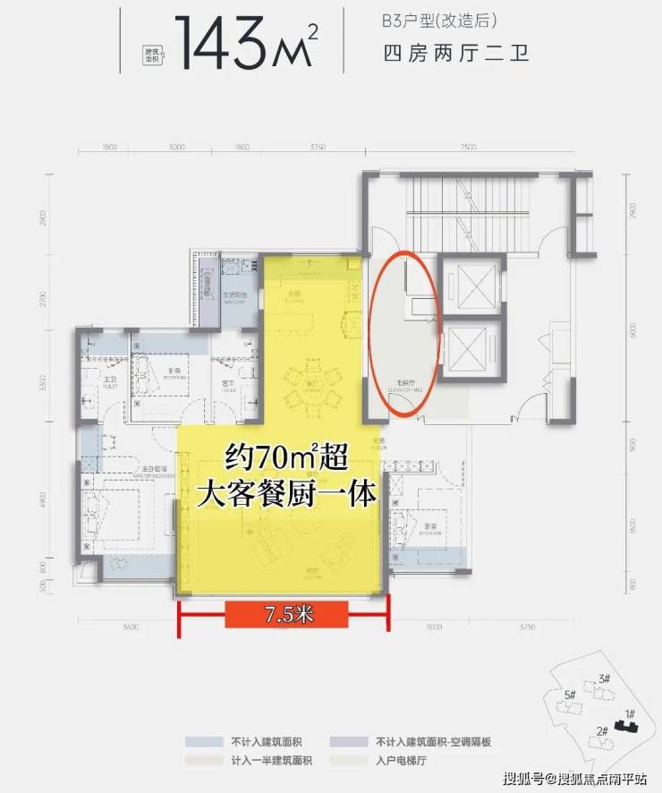 项目预计首开1#和3#栋,共有建面约122-143㎡两个面积段、四个户型。