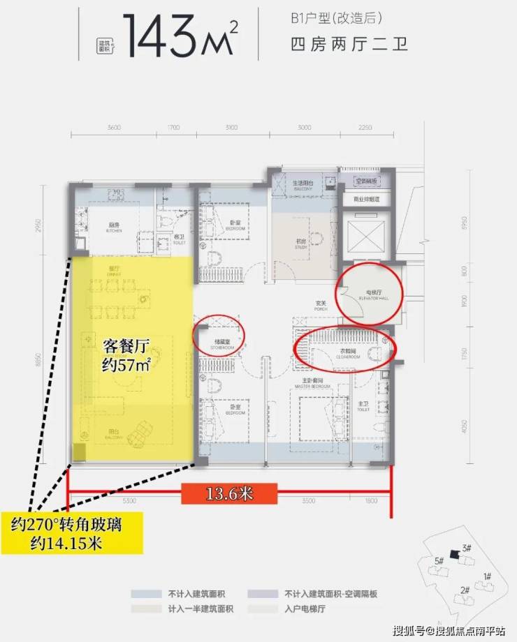 还有:约105%得房率、约270°转角落地窗的新规户型。