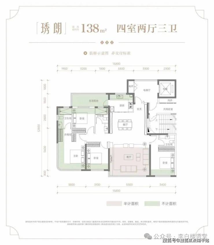 「琇朗」138㎡户型则通过南向长辈套房、宽厅等设计,精准匹配多代家庭需求。客厅面宽拓展至约5.5米,打造阔绰家庭聚场,南向长辈房配备独立卫生间。约138㎡户型兼顾了多功能空间与舒适性,特别是南向长辈套房的设计,精准抓住了改善客群的核心需求。