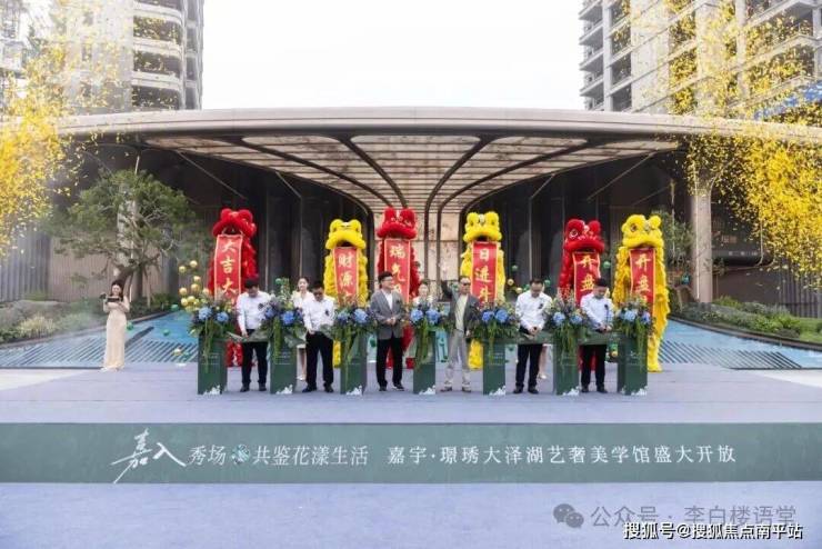 当点睛的雄狮跃动生姿,将现场气氛推向高潮。在领导们手持金剪、共同剪彩的庄重时刻,彩烟轻扬,鼓乐悠扬,掌声如潮,嘉宇·璟琇大泽湖艺奢美学馆在温馨而隆重的氛围中圆满礼成!